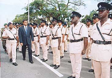 PLEDGE: President Bharrat Jagdeo inspects a guard of honour at Eve